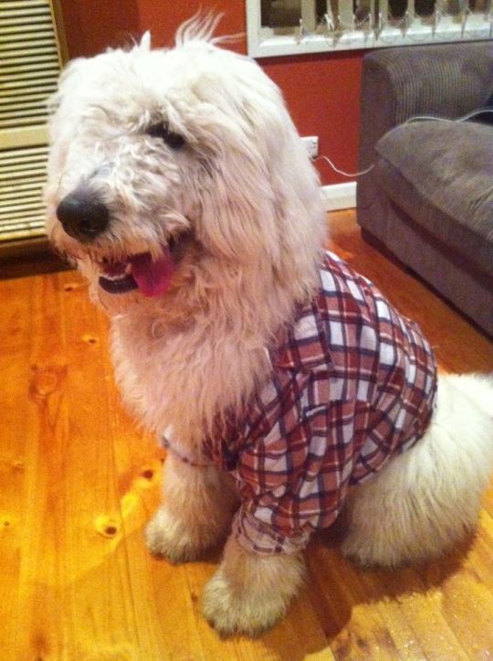 Grover is extremely handsome, with a HUGE fluffy, white coat, droopy ears and intelligent, dark eyes. When he needs a trim he’s slightly less handsome because he ends up becoming dreadlocked and frizzy, but most of the time he has movie star looks.