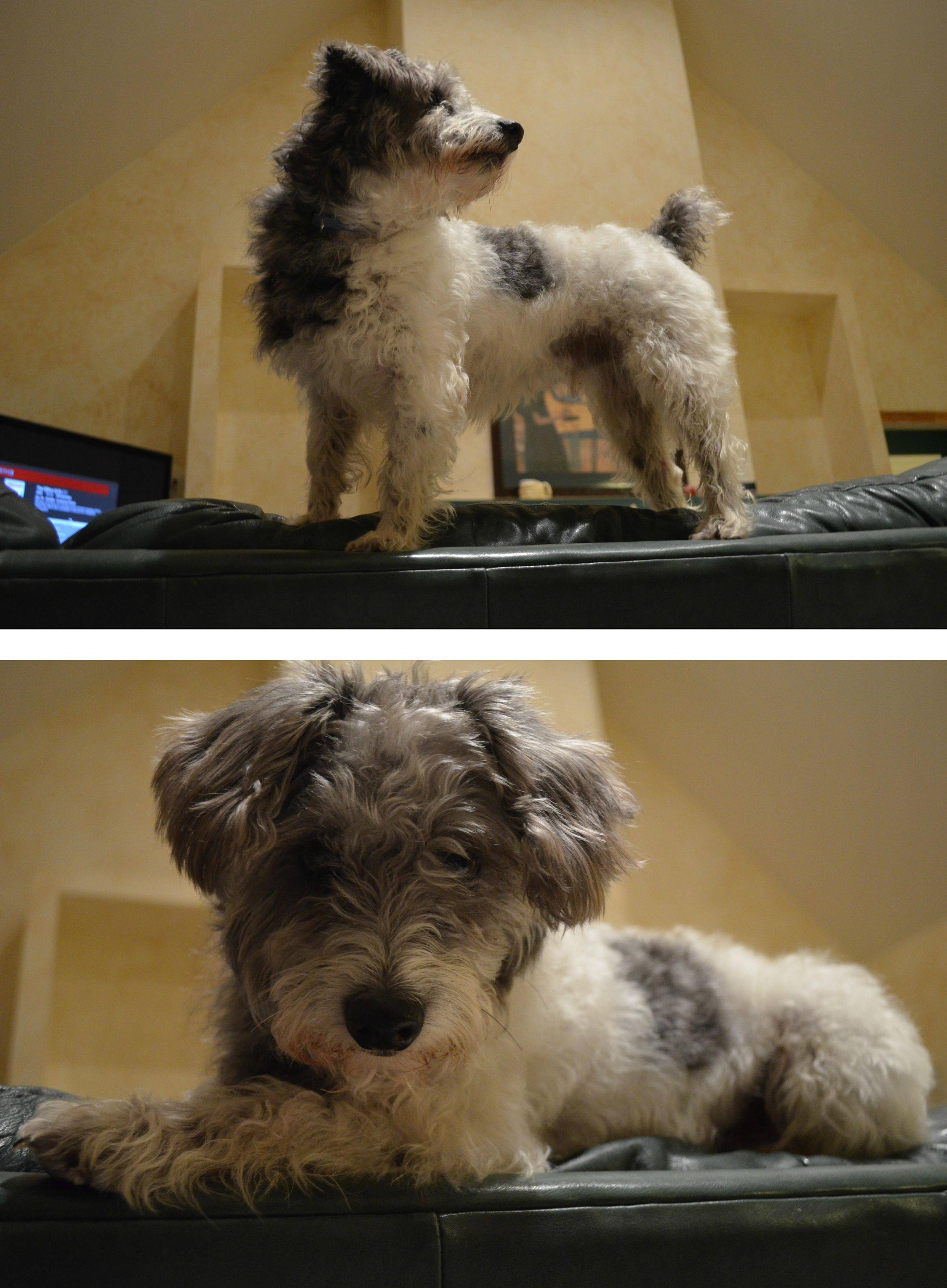 Grover is extremely handsome, with a HUGE fluffy, white coat, droopy ears and intelligent, dark eyes. When he needs a trim he’s slightly less handsome because he ends up becoming dreadlocked and frizzy, but most of the time he has movie star looks.